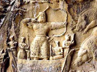 В третьей части этого комплекса, вход в арку сверху вниз украшен красивым рельефом, высеченным на сколе, который изображает крылатых ангелов, древа жизни, сцену охоты на кабана в лесу, охоты на птиц и т. д., вместе с музыкантами, что свидетельствует о веселье. Внизу этого рельефа изображен всадник в доспехах и с оружием. Некоторые считают, что на этом рельефе изображен «Сасанидский титулярный шахиншах Персии Пероз III», а другие полагают, что там изображен Хосров Парвиз.